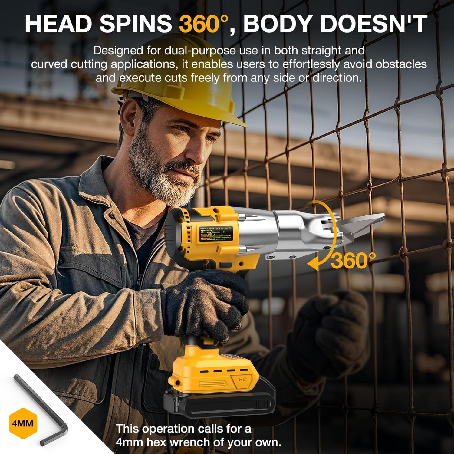 Cordless Metal Shears for Dewalt 20V Max - 14GA Steel Metal Cutter, 360° Pivoting Head, 400Nm Torque Cutting Stainless Sheet, Iron, Carpet, Leather, Cardboard(NO Battery)